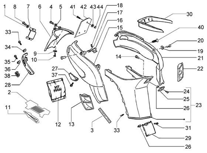 Portatarga - Gilera Stalker (ZAPC13), Piaggio Free (FCS2T), NRG (SAL1T), NRG Extreme (ZAPC21, ZAPC22), NRG MC2 (ZAPC04), NRG MC3 (ZAPC21, ZAPC32), NTT (SAL1T), Storm (TEC1T), TPH (TEC1T, TEC2T, ZAPC19, ZAPC29), Zip FR