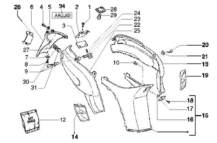 Elemento di copertura -PIAGGIO- NRG (SAL1T), NTT (SAL1T), Storm (TEC1T), TPH (TEC1T, TEC2T, ZAPC19, ZAPC29, ZAPM02)