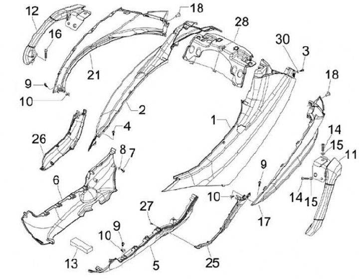 Spoiler a destra -PIAGGIO- Gilera Fuoco - non verniciato (--)