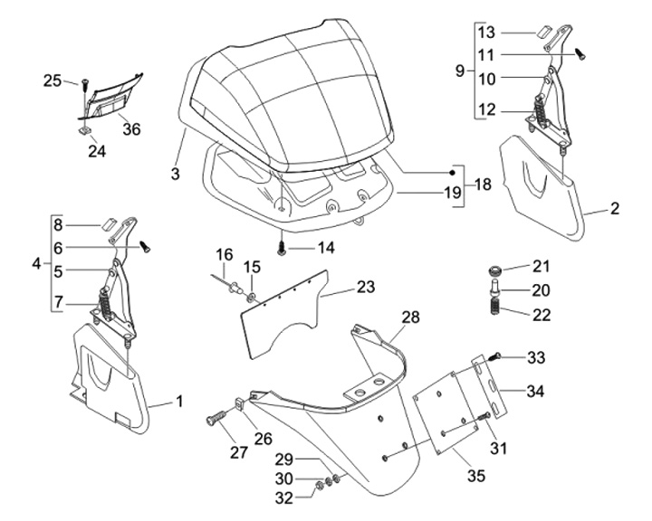 Allargamento per portatarga -PIAGGIO- Vespa GT 250 (ZAPM45102), Vespa GT L 125 (ZAPM31100, ZAPM31101), Vespa GT L 200 (ZAPM31200), Vespa GTS 125 (ZAPM31300), Vespa GTS 250 (ZAPM45100, ZAPM45101), Vespa GTS 300 (ZAPM45200, ZAPM45202), Vespa GTS Sup