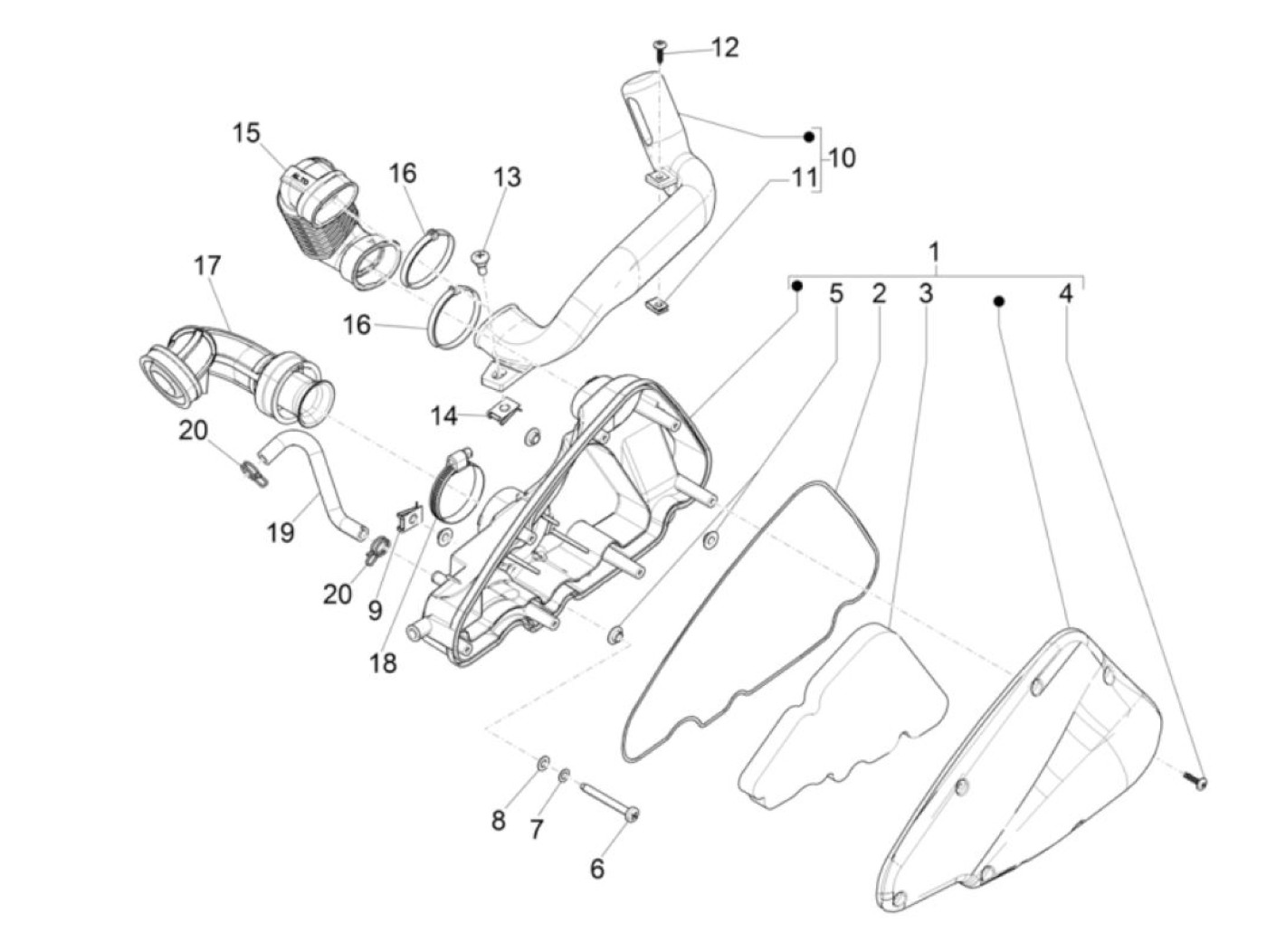 Fascetta stringitubo per gomma aspirazione -PIAGGIO- Vespa GTS 125 (ZAPMA3100, ZAPMA3200, ZAPMA3700), Vespa GTS 150 (ZAPMA3200, ZAPMA3100), Vespa GTS HPE 300 (ZAPMA3600), Vespa GTS Super 125 (ZAPMA3100, ZAPMA3200, ZAPMA3700), Vespa GTS Super HPE 300 (ZAPM