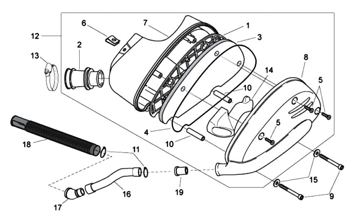 Snorkel di aspirazione per scatola filtro aria -PIAGGIO- Aprilia SR50 (motore Suzuki, ZD4RLA), SR50 (motore Piaggio, ZD4TEA, ZD4VFD00), SR50 DiTech (motore Suzuki, ZD4RLB, ZD4RLE), SR50 DiTech (motore Piaggio, ZD4RLD, ZD4TE0)