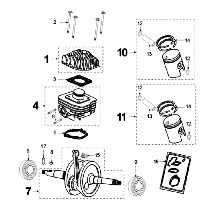 Set guarnizioni motore -RMS- Peugeot 50 cc AC (verticale) - SPEEDFIGHT1 50 cc AC, SPEEDFIGHT2 50 cc AC, TKR50, TREKKER50, VIVACITY50, ELYSEO50, SQUAB50, SV50, ZENITH50, BUXY50, ELYSTAR50, LOOXOR50, SPEEDAKE