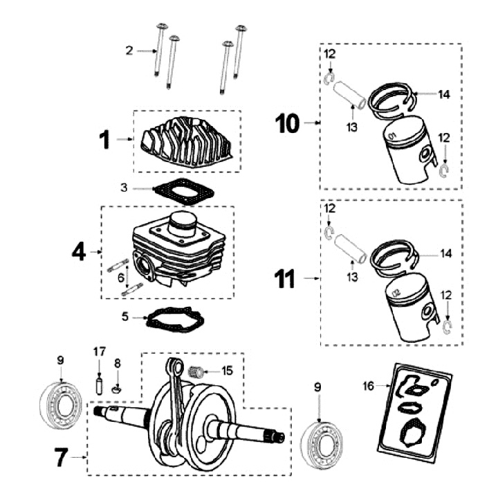 Set guarnizioni motore -RMS- Peugeot 50 cc AC (verticale) - SPEEDFIGHT1 50 cc AC, SPEEDFIGHT2 50 cc AC, TKR50, TREKKER50, VIVACITY50, ELYSEO50, SQUAB50, SV50, ZENITH50, BUXY50, ELYSTAR50, LOOXOR50, SPEEDAKE