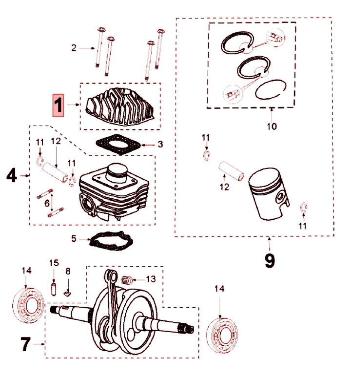 Gruppo termico (ghisa, pistone Pulsair), albero motore