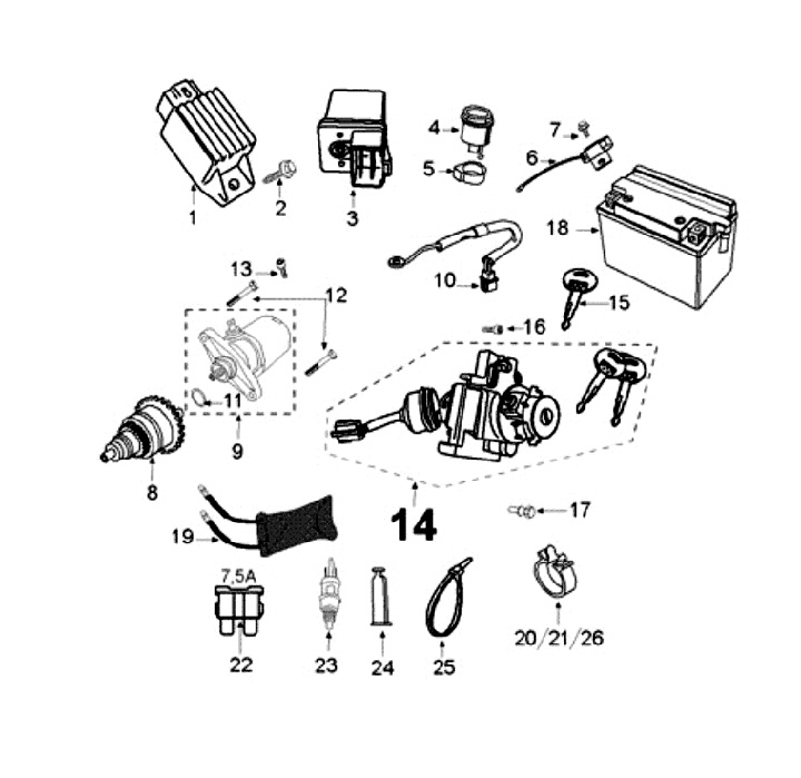 Relè di avviamento -QUALITÀ OEM- Rex, Qingqi, V-Clic