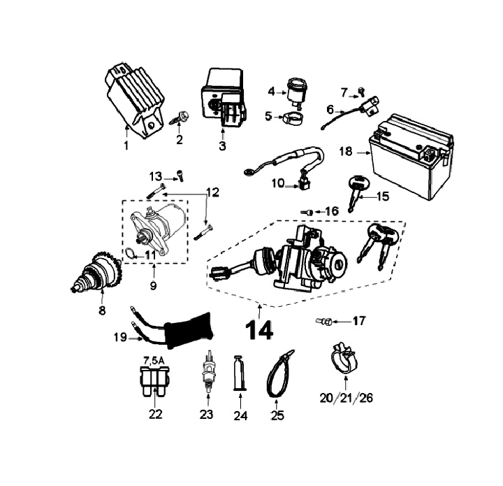 Relè di avviamento -QUALITÀ OEM- Rex, Qingqi, V-Clic
