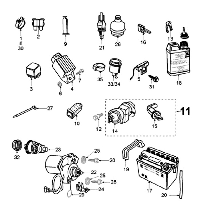 Interruttore luce freno -101 OCTANE- DNA, ICE, Runner (fino al 2005), Stalker, Piaggio Beverly, Free, Hexagon, Liberty, NRG, NRG, MC2, NRG MC3, NRG Extreme, NTT, Storm, TPH, Sfera, Sfera RST, Quartz, SKR, Skipper, X9, Zip, Zip 2, Vespa ET2, ET4, GTV, LXV,