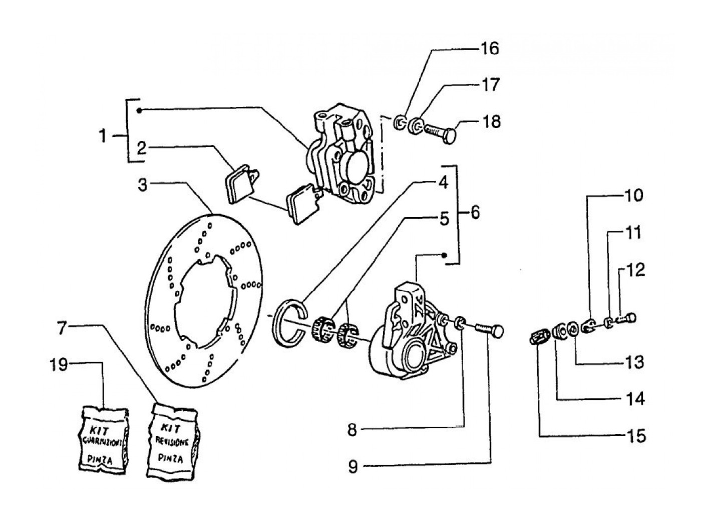 Pinza freno anteriore -PIAGGIO- Vespa Primavera 125 (RP8M82500, RP8M82821, RP8M82100, RP8M82310), Vespa Primavera 50 (ZAPCA0100, ZAPCA0200, ZAPCA0102, ZAPCA0202, ZAPCD020, ZAPCD010), Vespa Sprint 50 (ZAPCA0101, ZAPCA0201, ZAPCA0103, ZAPCA0203, ZAPCAV6B, Z