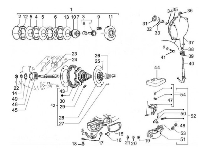 Separatore frizione -PIAGGIO- Vespa PX, T5 125cc, Cosa2, Rally180 (VSD1T), Rally200 (VSE1T), Sprint150 (VLB1T), TS125 (VNL3T), GT125 (VNL2T), GTR125 (VNL2T), GL150 (VLA1T), Super, GS160 / GS4 (VSB1T), SS180 (VSC1T), VNA, VNB, VBA, VBB