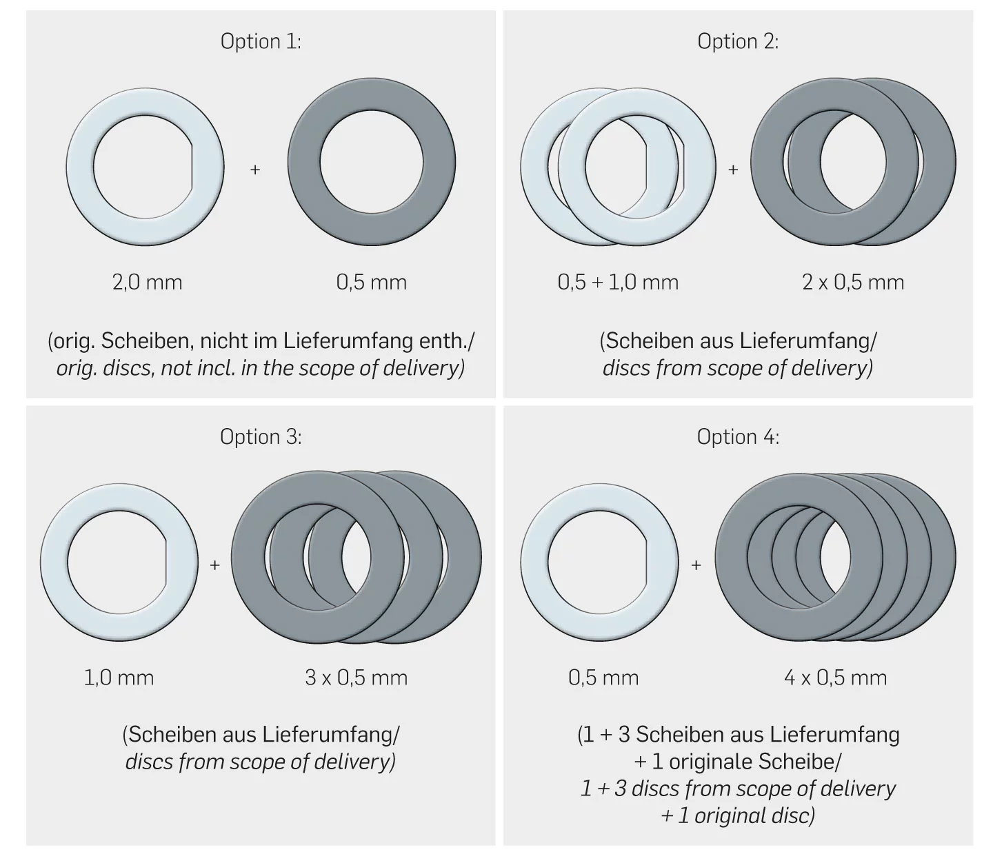 Il supporto della pinza freno è disponibile per Vespa o LML. La differenza tra i due tipi risiede nelle diverse dimensioni del comando del tachimetro. La scelta dell'adattatore corretto dipende quindi dal tamburo del freno esistente/utilizzato (Piaggio o LML). Esempi: