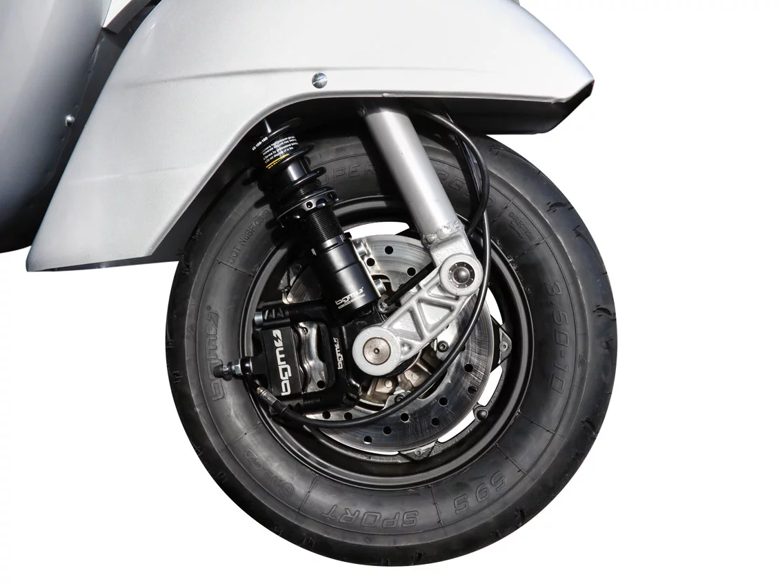 Una Vespa PX (anno di costruzione 1985) che è stata equipaggiata con un kit di retrofit Grimeca per freni a disco richiede l'adattatore di tipo PX.