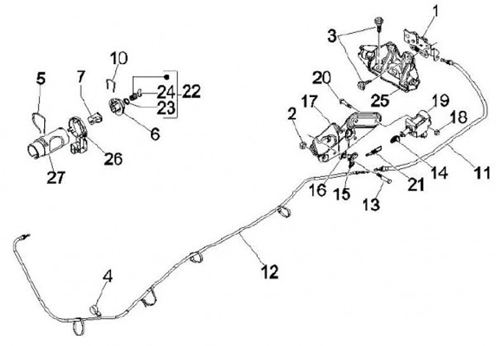 Cavo (corto) per blocco panchetta -PIAGGIO- Vespa GT 250 (ZAPM45102), Vespa GT L 125 (ZAPM31100, ZAPM31101), Vespa GT L 200 (ZAPM31200), Vespa GTS 125 (ZAPM31300, ZAPMA3100, ZAPMA3200, ZAPMA3700), Vespa GTS 150 (ZAPMA3200, ZAPMA3100), Vespa GTS 250 (ZAPM4
