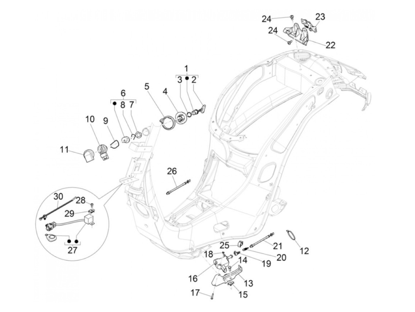 Interruttore accensione -PIAGGIO- Vespa GT 250 (ZAPM45102), Vespa GT L 125 (ZAPM31100, ZAPM31101), Vespa GT L 200 (ZAPM31200), Vespa GTS 125 (ZAPM31300), Vespa GTS 250 (ZAPM45100, ZAPM45101), Vespa GTS 300 (ZAPM45200, ZAPM45202), Vespa GTS Super 125 (ZAPM
