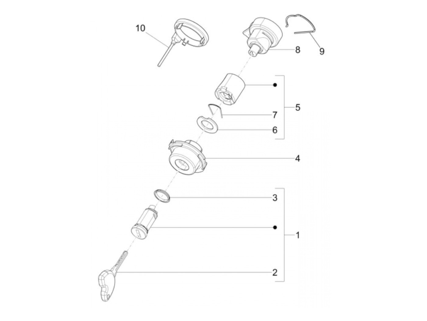 Boccola On-Off-Lock -PIAGGIO- Vespa GT 250 (ZAPM45102), Vespa GT L 125 (ZAPM31100, ZAPM31101), Vespa GT L 200 (ZAPM31200), Vespa GTS 125 (ZAPM31300), Vespa GTS 250 (ZAPM45100, ZAPM45101), Vespa GTS 300 (ZAPM45200, ZAPM45202), Vespa GTS Super 125 (ZAPM4530