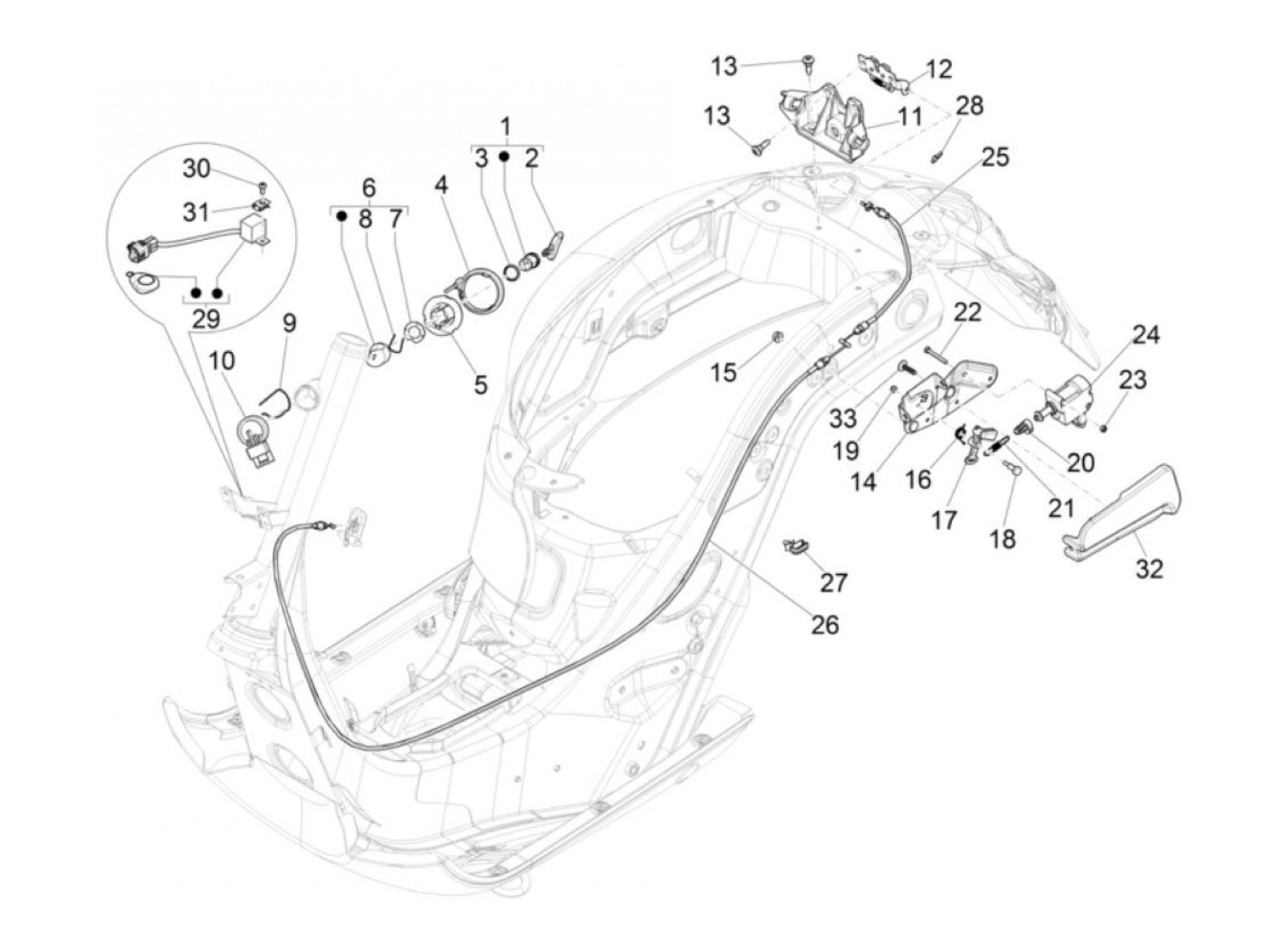 Blocco panca -PIAGGIO- Vespa GT 250 (ZAPM45102), Vespa GT L 125 (ZAPM31100, ZAPM31101), Vespa GT L 200 (ZAPM31200), Vespa GTS 125 (ZAPM31300, ZAPMA3100, ZAPMA3200, ZAPMA3700), Vespa GTS 150 (ZAPMA3200, ZAPMA3100), Vespa GTS 250 (ZAPM45100, ZAPM45101),