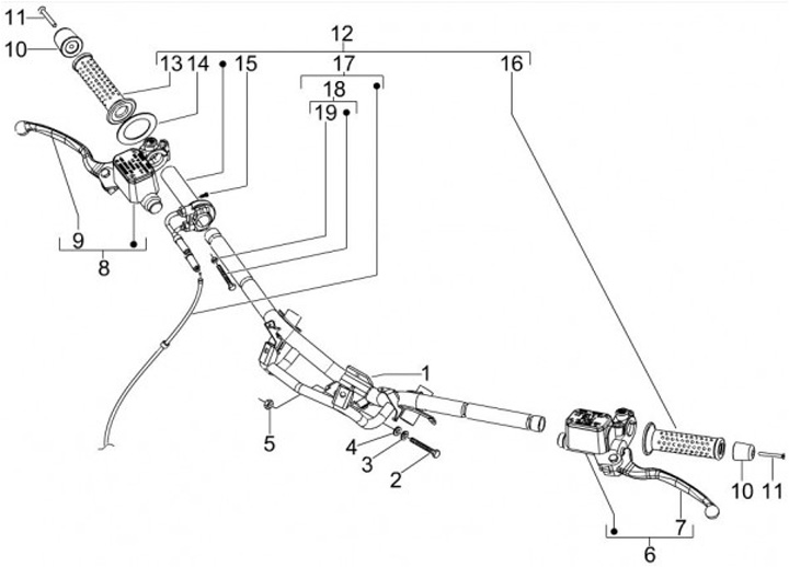 Manubri -PIAGGIO- Gilera Runner 125 (ZAPM24200, ZAPM24100, ZAPM46100, ZAPM24000, ZAPM07000, ZAPM46300, ZAPM46301), Gilera Runner 180 (ZAPM08000), Gilera Runner 200 (ZAPM24300, ZAPM46200, ZAPM46400, ZAPM46401), Gilera Runner 50 (ZAPC46100, ZAPC46200, ZAPC4