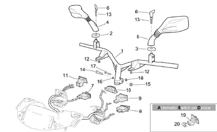 Interruttore indicatore -APRILILIA- Amico, Atlantic, Guliver, Leonardo, Mojito Retro, Rally, Sonic, SR, SR DiTech