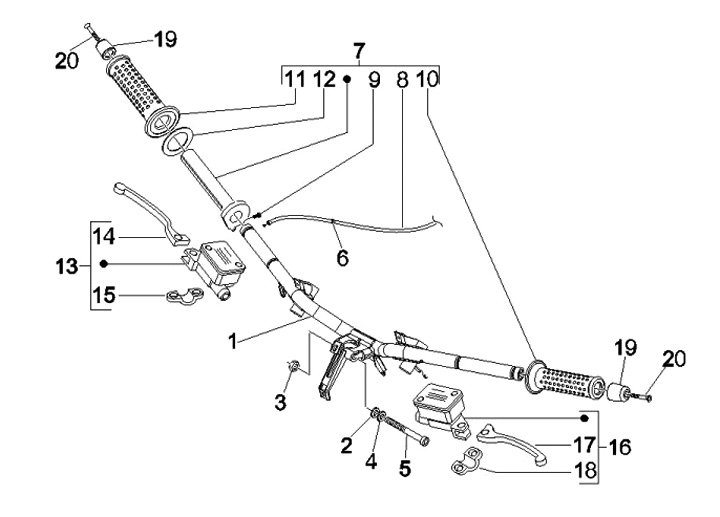 Leva freno , nera (Heng Tong) -PIAGGIO- L=175mm - Aprilia SR 50 (ZD4TEA, ZD4VFD), Di-Tech (ZD4VFB), SR 125 Max 125-300 (ZAPM35), Gilera DNA 50 (ZAPC27), Fuoco 500, Nexus 125-300, Stalker 50, Beverly 125-300, Carnaby 125-300, MP3 125-500, X7 125-300, X