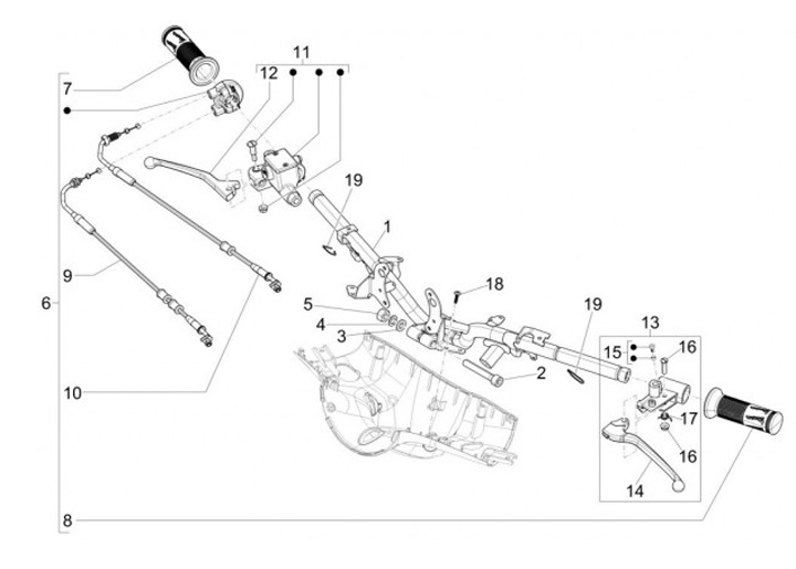Manubri -PIAGGIO- Vespa Primavera 125 (ZAPM81100, ZAPM81101, ZAPMA1100, RP8M82500, RP8M82821, RP8M82100, RP8M82310, ZAPMA1101, ZAPMD1100), Vespa Primavera 150 (ZAPM81200, ZAPMA1200, ZAPM81201, ZAPMA1201, ZAPMD120), Vespa Primavera 50 (ZAPC53200, ZAPC53100