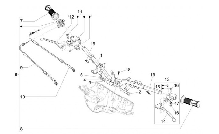 Manubri -PIAGGIO- Vespa Primavera 125 (ZAPM81100, ZAPM81101, ZAPMA1100, RP8M82500, RP8M82821, RP8M82100, RP8M82310, ZAPMA1101, ZAPMD1100), Vespa Primavera 150 (ZAPM81200, ZAPMA1200, ZAPM81201, ZAPMA1201, ZAPMD120), Vespa Primavera 50 (ZAPC53200, ZAPC53100