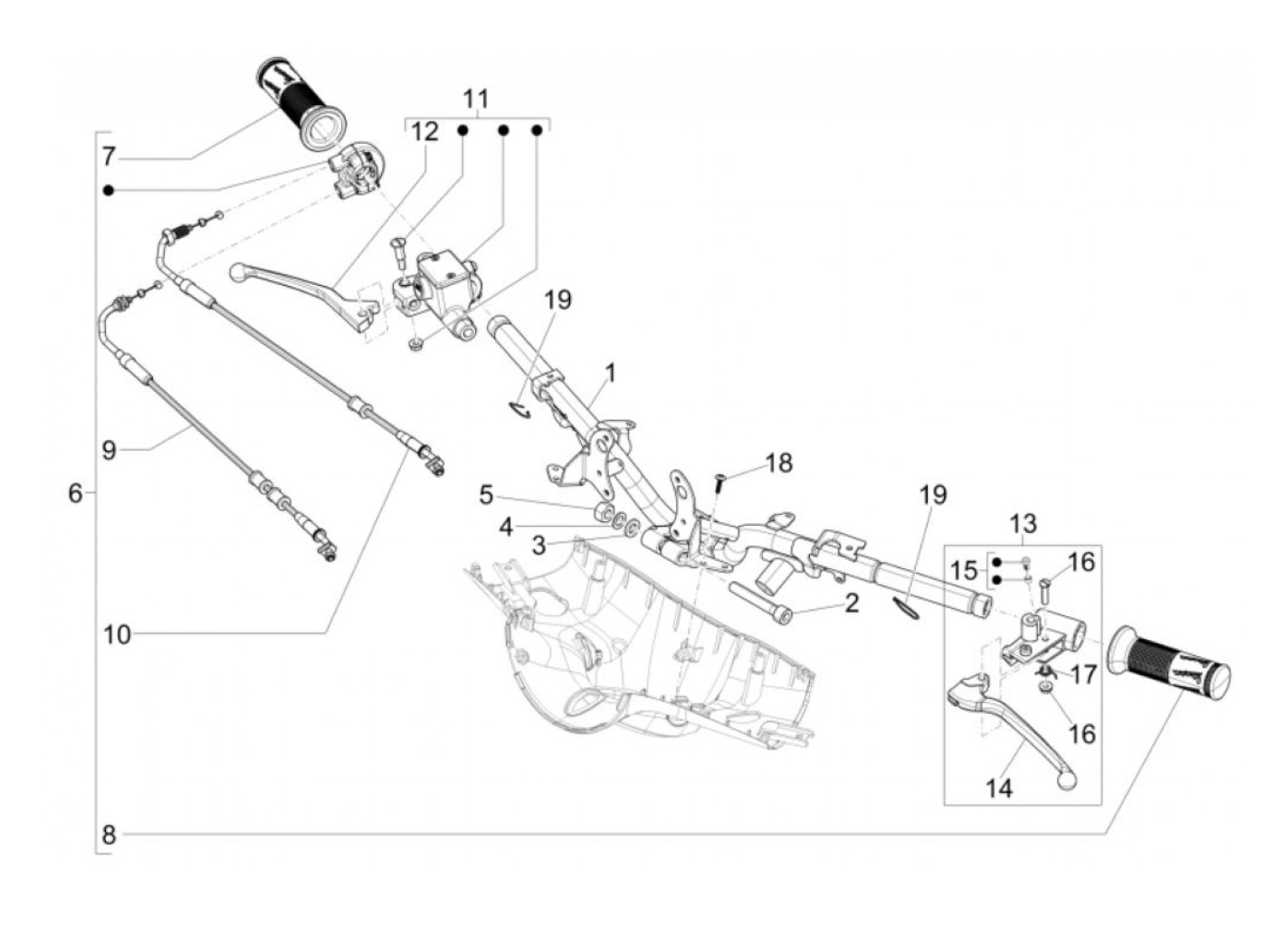 Manubri -PIAGGIO- Vespa Primavera 125 (ZAPM81100, ZAPM81101, ZAPMA1100, RP8M82500, RP8M82821, RP8M82100, RP8M82310, ZAPMA1101, ZAPMD1100), Vespa Primavera 150 (ZAPM81200, ZAPMA1200, ZAPM81201, ZAPMA1201, ZAPMD120), Vespa Primavera 50 (ZAPC53200, ZAPC53100