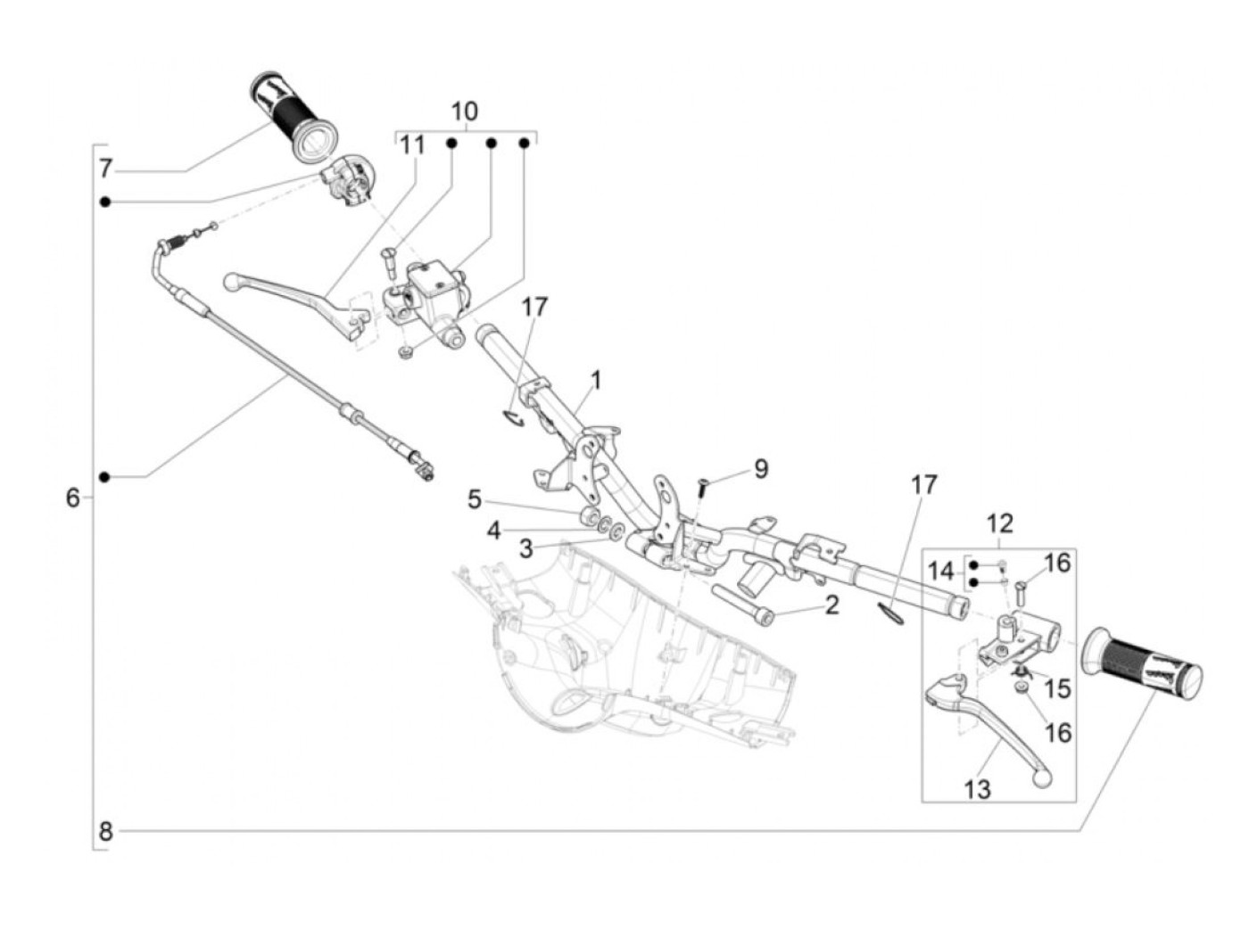 Manubri -PIAGGIO- Vespa Primavera 125 (ZAPM81100, ZAPM81101, ZAPMA1100, RP8M82500, RP8M82821, RP8M82100, RP8M82310, ZAPMA1101, ZAPMD1100), Vespa Primavera 150 (ZAPM81200, ZAPMA1200, ZAPM81201, ZAPMA1201, ZAPMD120), Vespa Primavera 50 (ZAPC53200, ZAPC53100