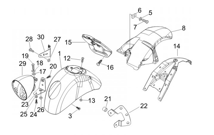 Parafango posteriore -PIAGGIO- Vespa GT 250 (ZAPM45102), Vespa GT L 125 (ZAPM31100, ZAPM31101), Vespa GTS 250 (ZAPM45100), Vespa GTS 300 (ZAPM45200, ZAPM45202, ZAPMA3300), Vespa GTS HPE 300 (ZAPMA3600, ZAPMD310), Vespa GTS Super 125 (ZAPM45300, ZAPMA3700,