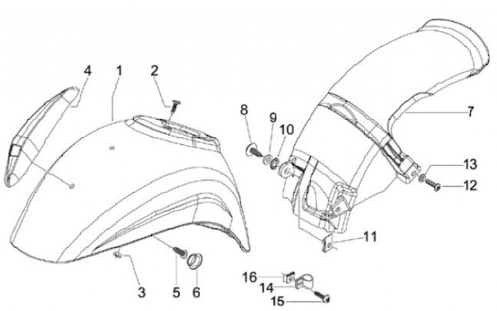 Parafango posteriore -PIAGGIO- Vespa ET2 50 (ZAPC12000, ZAPC38100), Vespa ET4 125 (ZAPM19000), Vespa ET4 50 50 (ZAPC26000, ZAPC26100), Vespa LT 125 (RP8M66503), Vespa LT 150 (RP8M66603), Vespa LX 125 (ZAPM68300, ZAPM68303), Vespa LX 150 (ZAPM68400), Vespa