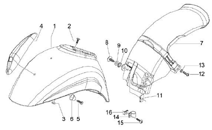 Parafango posteriore -PIAGGIO- Vespa ET2 50 (ZAPC12000, ZAPC38100), Vespa ET4 125 (ZAPM19000), Vespa ET4 50 50 (ZAPC26000, ZAPC26100), Vespa LT 125 (RP8M66503), Vespa LT 150 (RP8M66603), Vespa LX 125 (ZAPM68300, ZAPM68303), Vespa LX 150 (ZAPM68400), Vespa
