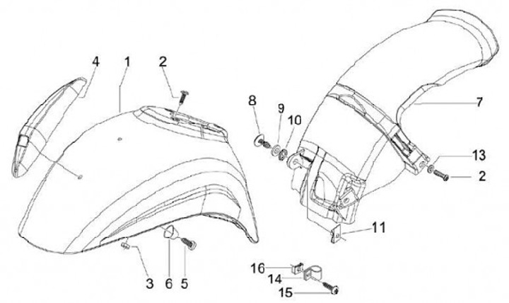 Parafango posteriore -PIAGGIO- Vespa ET2 50 (ZAPC12000, ZAPC38100), Vespa ET4 125 (ZAPM19000), Vespa ET4 50 50 (ZAPC26000, ZAPC26100), Vespa LT 125 (RP8M66503), Vespa LT 150 (RP8M66603), Vespa LX 125 (ZAPM68300, ZAPM68303), Vespa LX 150 (ZAPM68400), Vespa