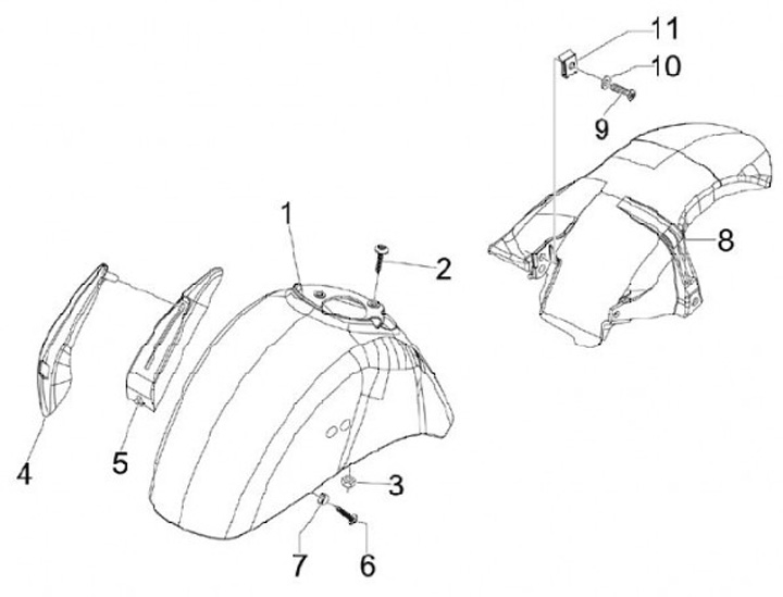 Parafango posteriore -PIAGGIO- Vespa GT 250 (ZAPM45102), Vespa GT L 125 (ZAPM31100, ZAPM31101), Vespa GTS 250 (ZAPM45100), Vespa GTS 300 (ZAPM45200, ZAPM45202, ZAPMA3300), Vespa GTS HPE 300 (ZAPMA3600, ZAPMD310), Vespa GTS Super 125 (ZAPM45300, ZAPMA3700,