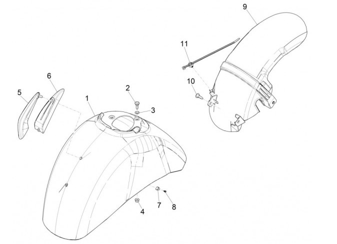Parafango -PIAGGIO- Vespa GT L 125 (ZAPM31101), Vespa GTS 125 (ZAPM31300, ZAPMA3100, ZAPMA3200, ZAPMA3700), Vespa GTS 150 (ZAPMA3200, ZAPMA3100), Vespa GTS 250 (ZAPM45100, ZAPM45101), Vespa GTS 300 (ZAPM45200, ZAPM45202, ZAPMA3300), Vespa GTS HPE 300 (ZAP