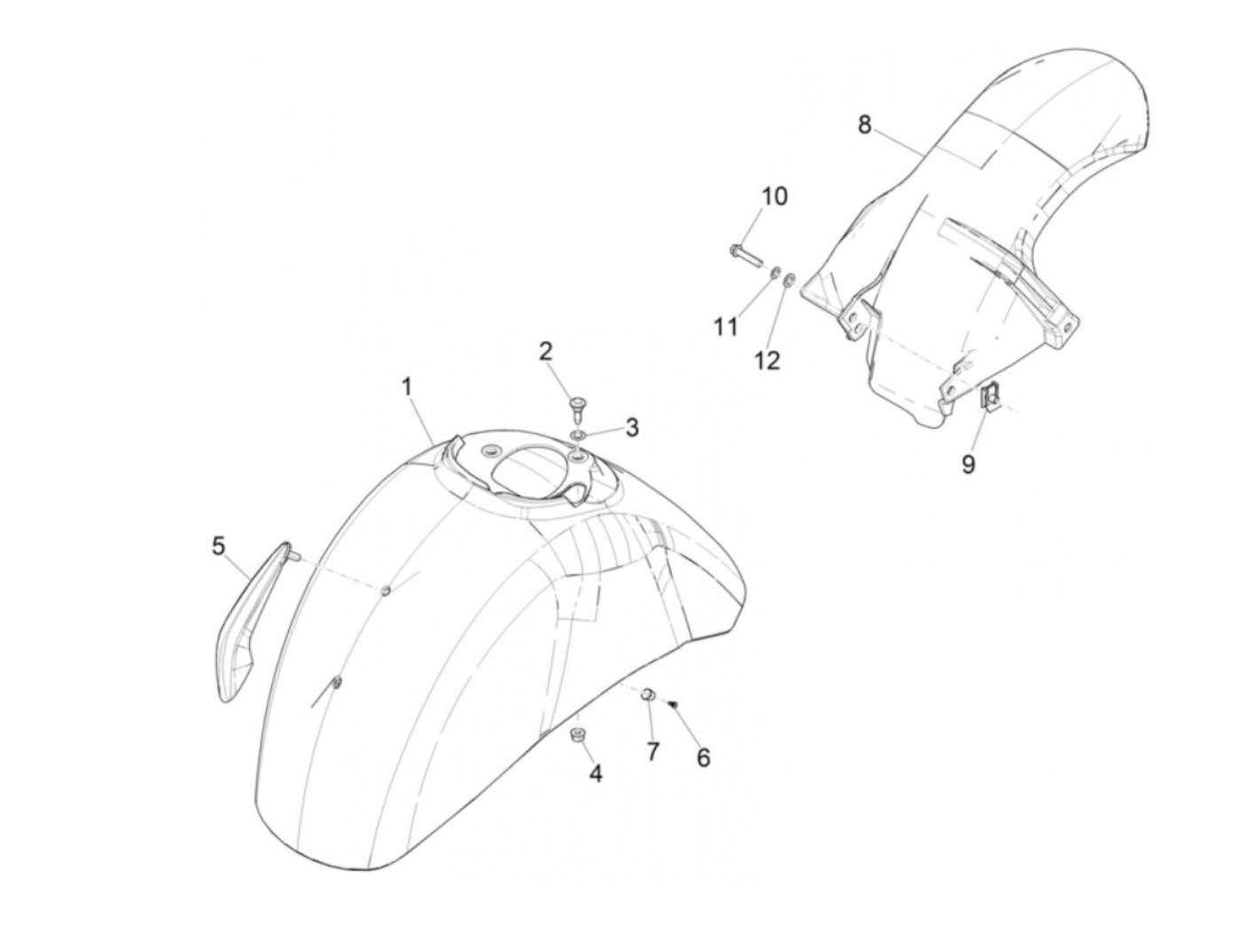Parafango posteriore -PIAGGIO- Vespa GT 250 (ZAPM45102), Vespa GT L 125 (ZAPM31100, ZAPM31101), Vespa GTS 250 (ZAPM45100), Vespa GTS 300 (ZAPM45200, ZAPM45202, ZAPMA3300), Vespa GTS HPE 300 (ZAPMA3600, ZAPMD310), Vespa GTS Super 125 (ZAPM45300, ZAPMA3700,