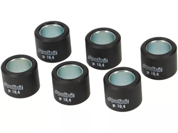 L'usura dei rulli è caratterizzata da un appiattimento su un lato, il che significa che i rulli non riescono più a scorrere correttamente nella pista del variatore. Ciò comporta una scarsa accelerazione e spesso una velocità massima inferiore, poiché il variatore non può più estendersi completamente a causa del diametro ridotto dei rulli.