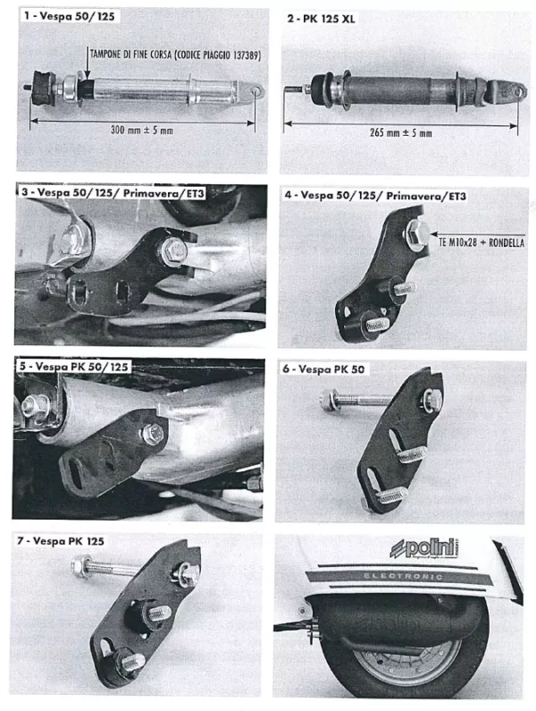Polini offre i sistemi di scarico per i casi dei motori PK e V50/PV. Finora, le banane per i modelli PK hanno sempre presentato un evidente appiattimento nella zona del collettore. Il nuovo originale Polini presenta solo una forma diversa del collettore, senza appiattimento. Un altro miglioramento significativo riguarda la staffa che collega il silenziatore al carter motore. Una volta montata la piastra di base della staffa sul carter del motore, il silenziatore può essere montato e rimosso abbastanza facilmente con due viti M8. Sul modello precedente della Banana, questo principio era già stato utilizzato nelle corse, ad esempio nella classe 5 del CES, per consentire un cambio gomme più rapido, ma in questo caso è stata necessaria un'iniziativa individuale nella creazione della staffa. In generale, con il nuovo Banana, Polini sembra aver imparato qualche lezione dal circo delle corse. La nuova banana Polini è anche direttamente adatta alla misura di pneumatici 3.50-10, che viene utilizzata quasi esclusivamente nelle gare. Naturalmente, i soliti pneumatici 3.00-10 per telai di piccole dimensioni sono ancora adatti. Ho montato la nuova banana originale sulla mia K5 per voi e ho fatto alcune prove. Il montaggio è andato bene. Non è necessario piegare, stringere o fare interventi più seri per posizionare correttamente lo scarico sullo scooter. I fori allungati della staffa offrono un notevole margine di regolazione del sistema per evitare il contatto con il pneumatico e il tamburo del freno. Polini indica espressamente che la lunghezza dell'ammortizzatore deve essere determinata prima di montare l'impianto di scarico.