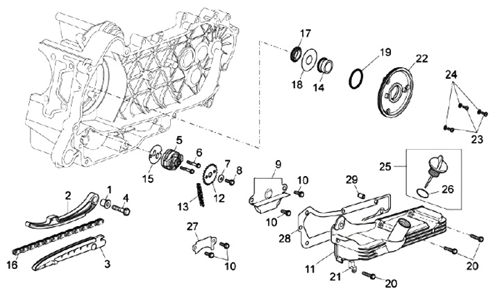 Pompa olio -PIAGGIO- Vespa GT 250 (ZAPM45102), Vespa GT L 125 (ZAPM31100, ZAPM31101), Vespa GT L 200 (ZAPM31200), Vespa GTS 125 (ZAPM31300), Vespa GTS 250 (ZAPM45100, ZAPM45101), Vespa GTS 300 (ZAPM45200, ZAPM45202, ZAPMA3300), Vespa GTS HPE 300 (ZAPMA360