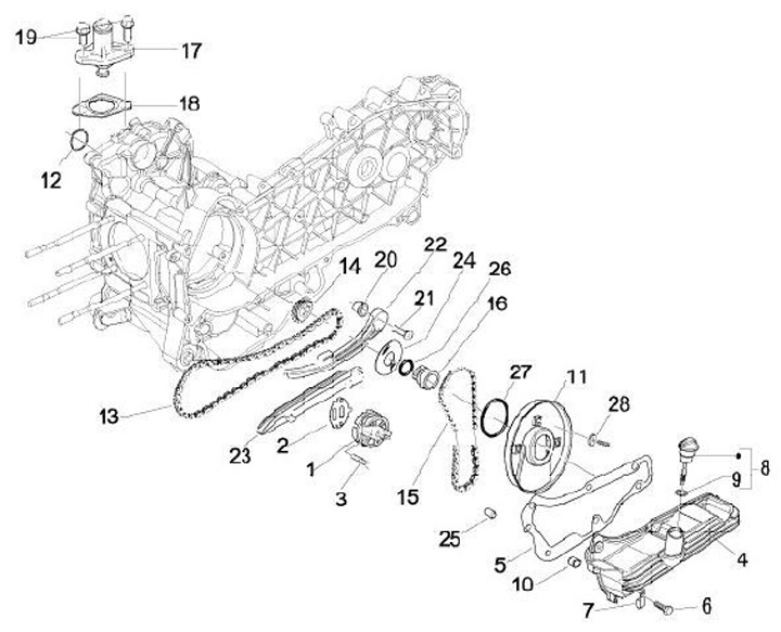 Pompa olio -PIAGGIO- Vespa GT 250 (ZAPM45102), Vespa GT L 125 (ZAPM31100, ZAPM31101), Vespa GT L 200 (ZAPM31200), Vespa GTS 125 (ZAPM31300), Vespa GTS 250 (ZAPM45100, ZAPM45101), Vespa GTS 300 (ZAPM45200, ZAPM45202, ZAPMA3300), Vespa GTS HPE 300 (ZAPMA360