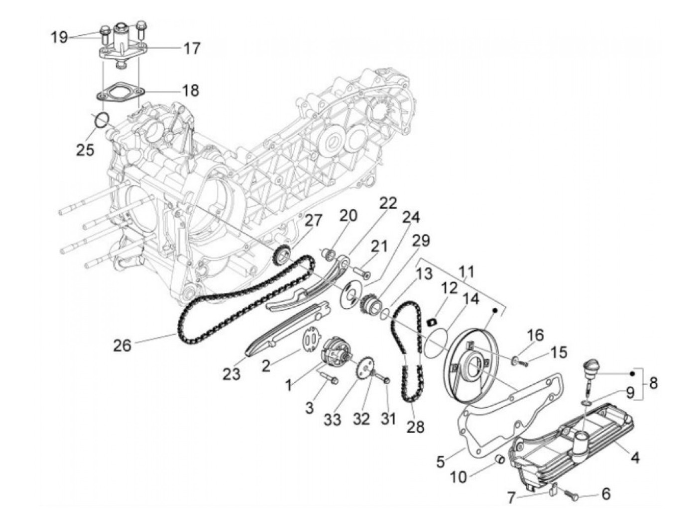 Pompa olio -PIAGGIO- Vespa GT 250 (ZAPM45102), Vespa GT L 125 (ZAPM31100, ZAPM31101), Vespa GT L 200 (ZAPM31200), Vespa GTS 125 (ZAPM31300), Vespa GTS 250 (ZAPM45100, ZAPM45101), Vespa GTS 300 (ZAPM45200, ZAPM45202, ZAPMA3300), Vespa GTS HPE 300 (ZAPMA360