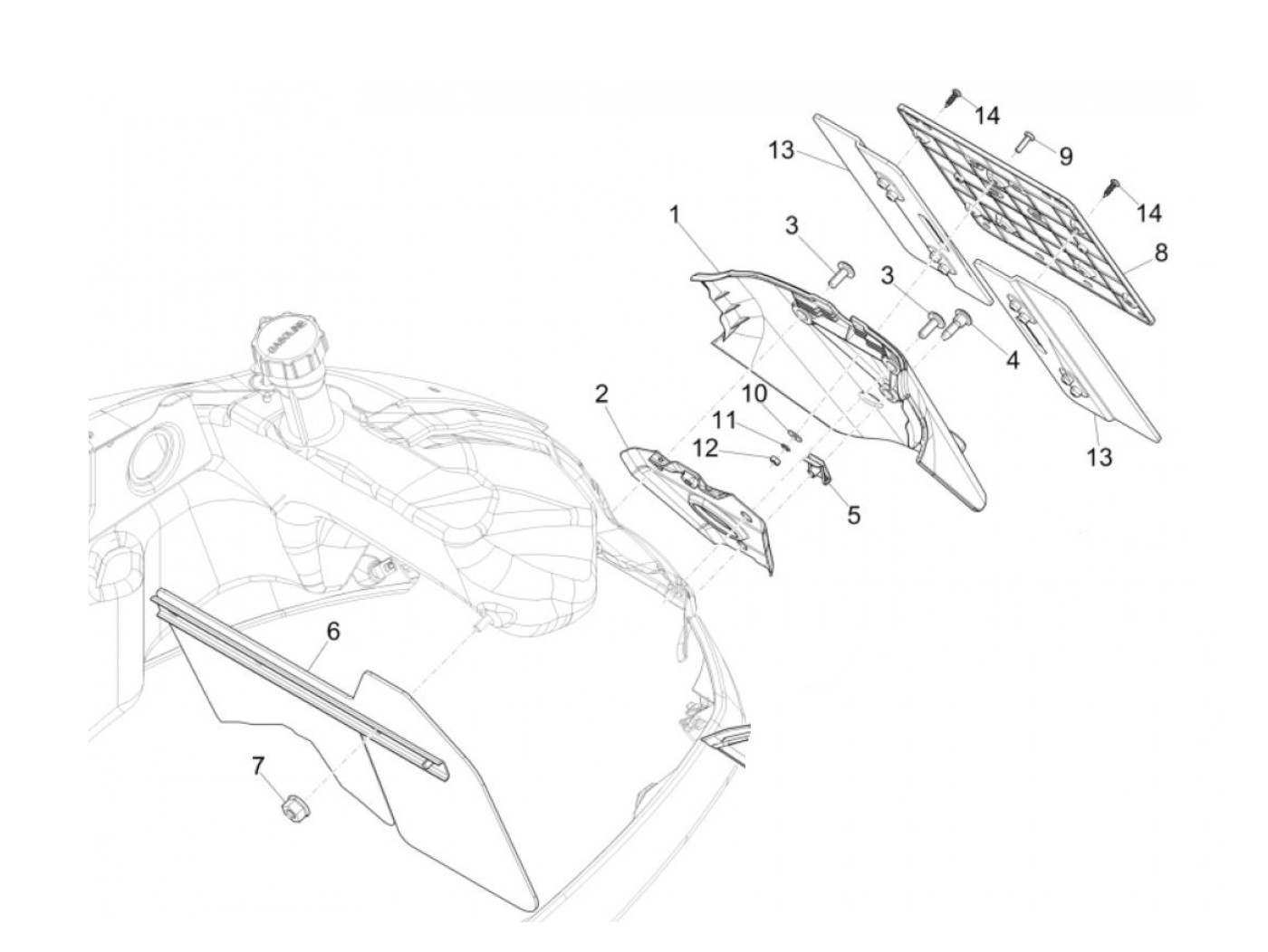 Porta targa - Porta targa -PIAGGIO- Vespa GTS 125 (ZAPM31300), Vespa GTS 250 (ZAPM45100, ZAPM45101), Vespa GTS 300 (ZAPM45200), Vespa GTS Super 125 (ZAPM45300), Vespa GTS Super 300 (ZAPM45200), Vespa GTV 125 (ZAPM31301), Vespa GTV 250 (ZAPM4