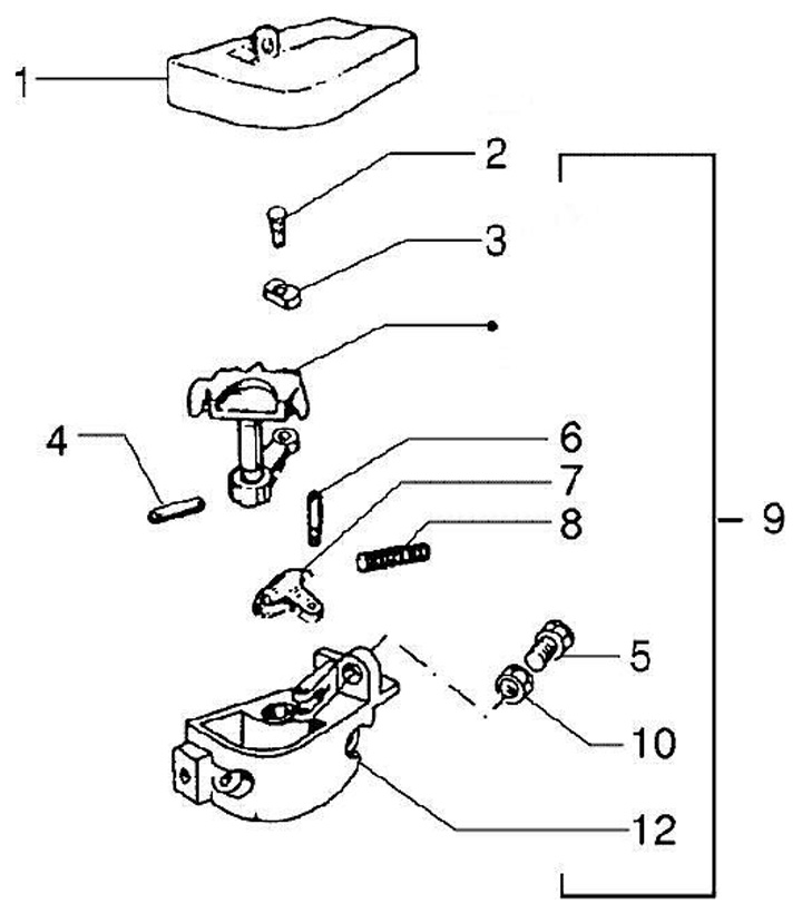 Bullone di bloccaggio della staffa a rulli del detentore del cambio -VESPA- PX, T5 125cc, Cosa, Rally180 (VSD1T), Rally200 (VSE1T), Sprint150 (VLB1T), TS125 (VNL3T), GT125 (VNL2T), GTR125 (VNL2T), GL150 (VLA1T), Super, da VNB5T a VNB6T, VBA, VBB