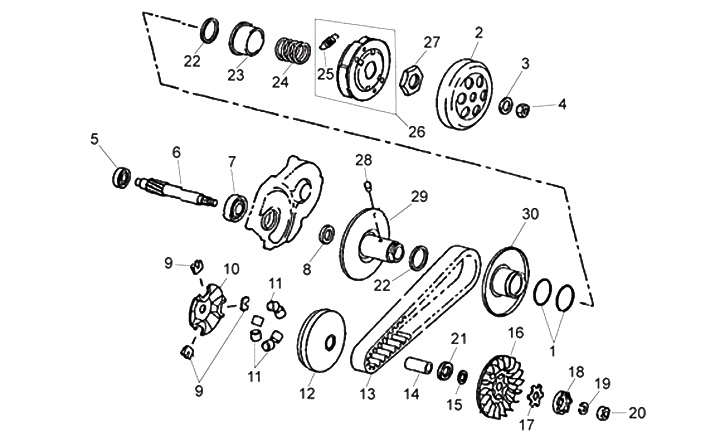 Kit dado Vario -MINARELLI- Minarelli 50 cc (tipo MA, MY, CW, CA, CY)