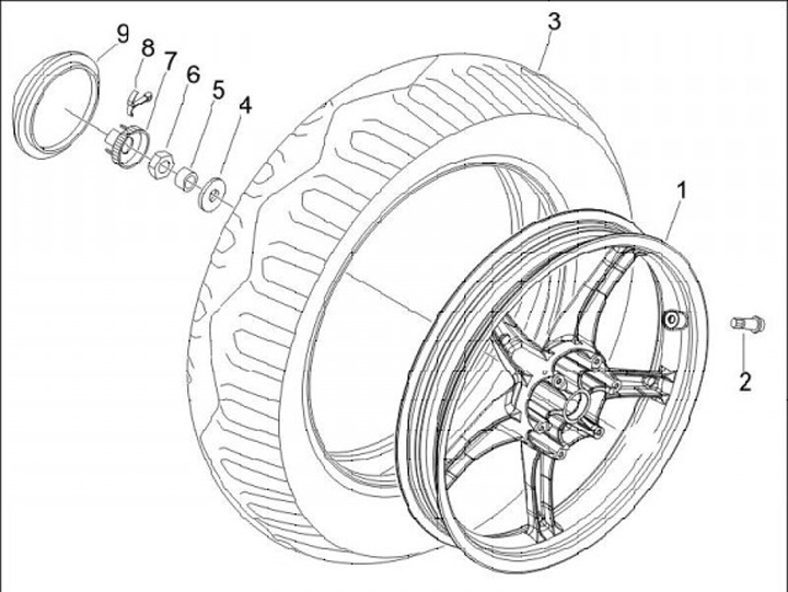 Dado ruota posteriore -PIAGGIO- Vespa PX (dal 1984), T5 125cc, PK XL, Cosa, Piaggio automatica, Gilera automatica