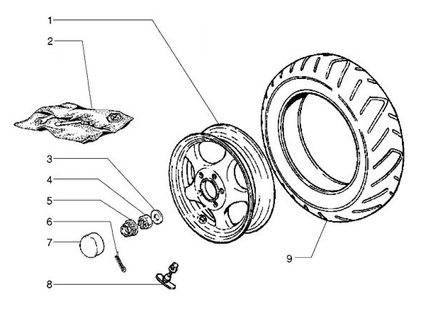 Dado ruota posteriore -PIAGGIO- Vespa PX (dal 1984), T5 125cc, PK XL, Cosa, Piaggio automatica, Gilera automatica