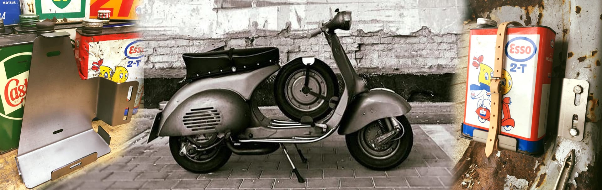 I porta-lattine d’olio sono particolarmente pratici e aggiungono un tocco di stile a qualsiasi Vespa classica