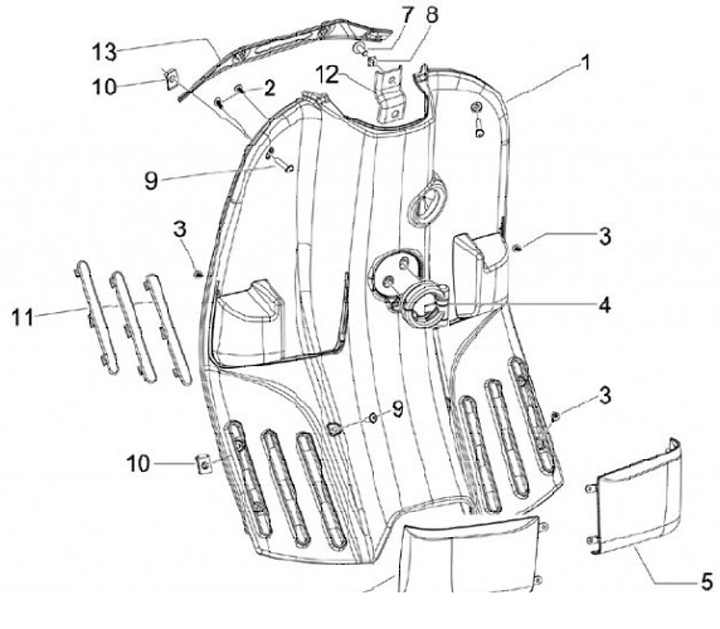 Rivestimento interno del paragambe -PIAGGIO- Vespa S 50-150 - primerizzato / non verniciato