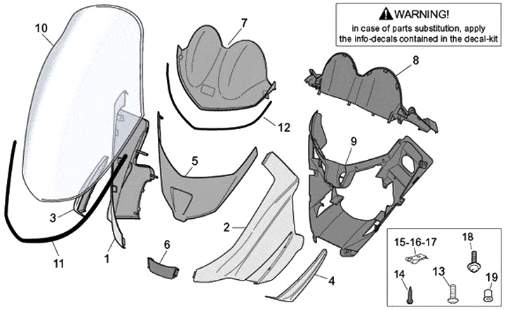 Boccola filettata per parabrezza abitacolo -PIAGGIO- Gilera DNA, Runner (dal 2006), Piaggio NRG Extreme, NRG MC3, NRG Power