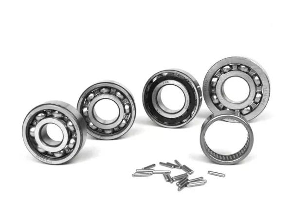 I set di cuscinetti contengono sempre i cuscinetti a sfere o a rulli utilizzati nell'alloggiamento del motore e i singoli aghi dei cuscinetti utilizzati sull'albero ausiliario. Il cuscinetto della biella non è incluso nel set.