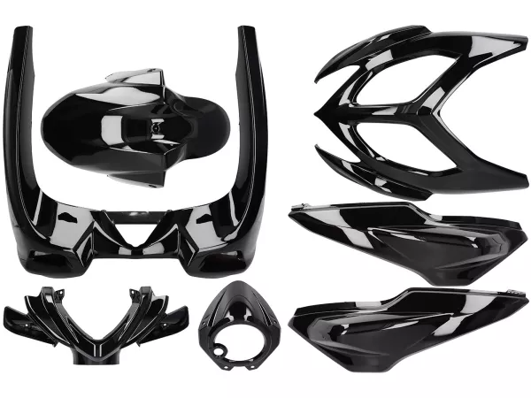 Set di parti della carenatura -DMP- 7 pezzi - Yamaha Aerox 2013 (YQ50/L, 2 tempi), MBK Nitro 2013 (YQ50/L, 2 tempi) - nero