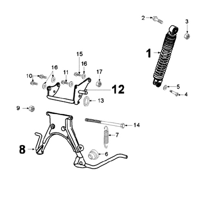 Ammortizzatore posteriore -MALOSSI- RS24/10-R, 333mm- Vespa ET2 50, S 50, Piaggio Quartz, ZIP SP, Sfera 50, Sfera80, Sfera RST 50, SKR 125, SKR150